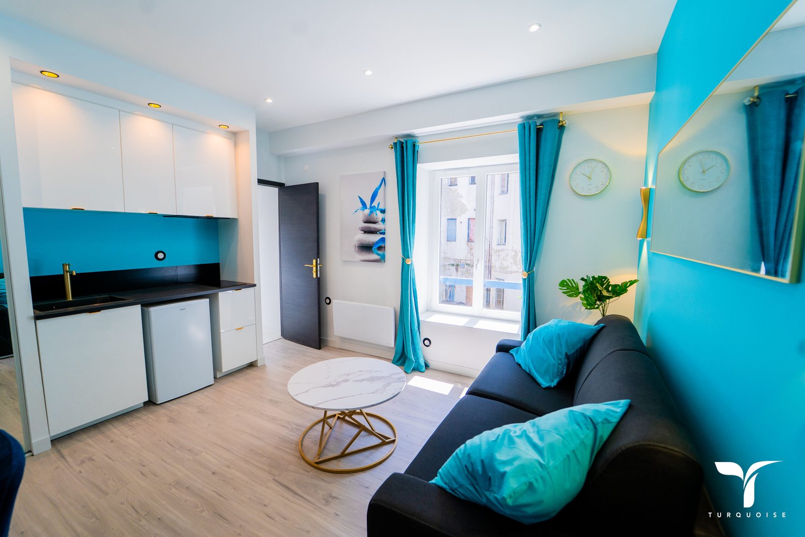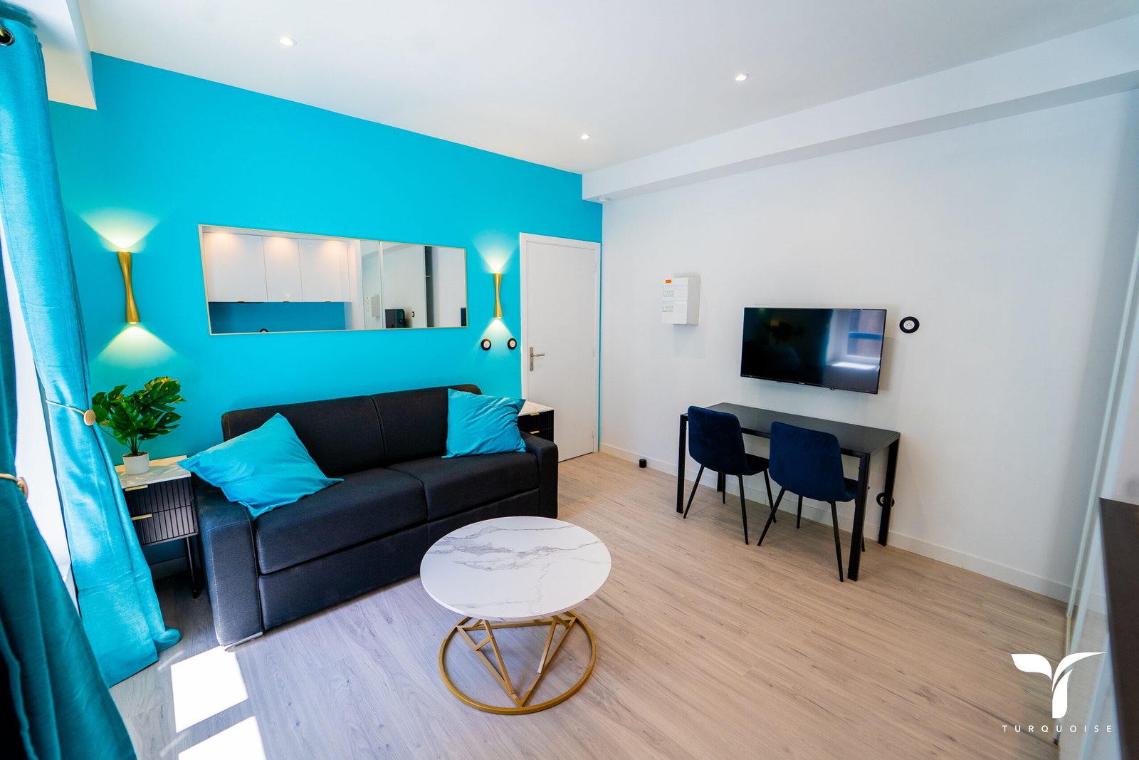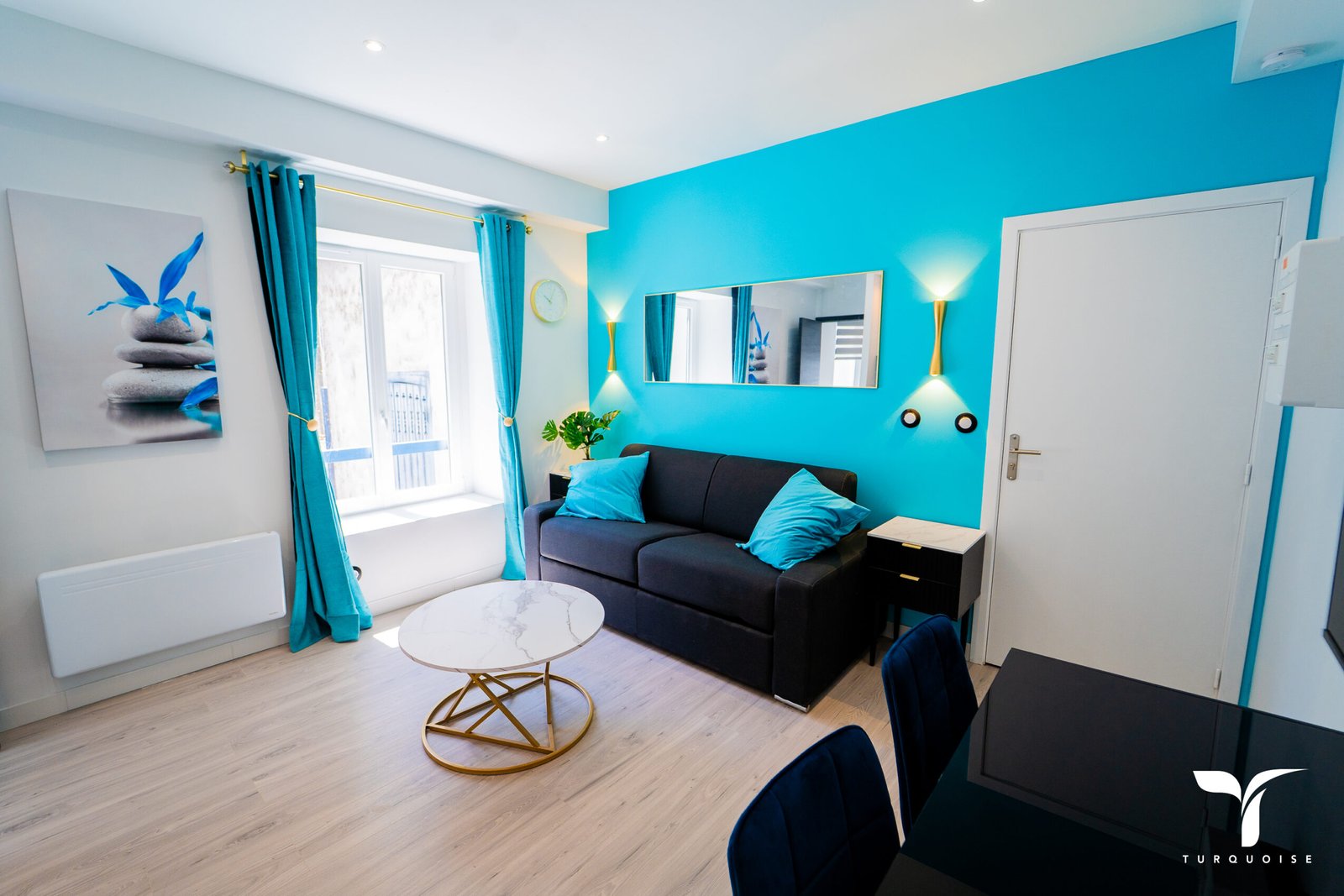 - Pièce de vie avec grand canapé 3 places et grande TV Samsung de 140 cm. - Cuisine équipée.